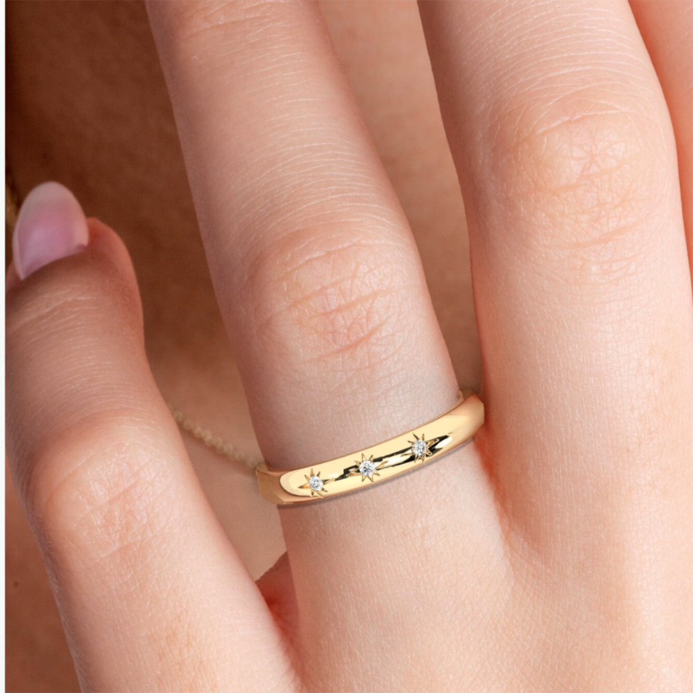 O ouro 18k, com sua riqueza e durabilidade, simboliza a estabilidade e o valor duradouro, refletindo a importância de um compromisso a longo prazo. Já o diamante, incorporando a raridade e a beleza inabalável, representa a pureza e a indestrutibilidade dos laços forjados entre duas pessoas.