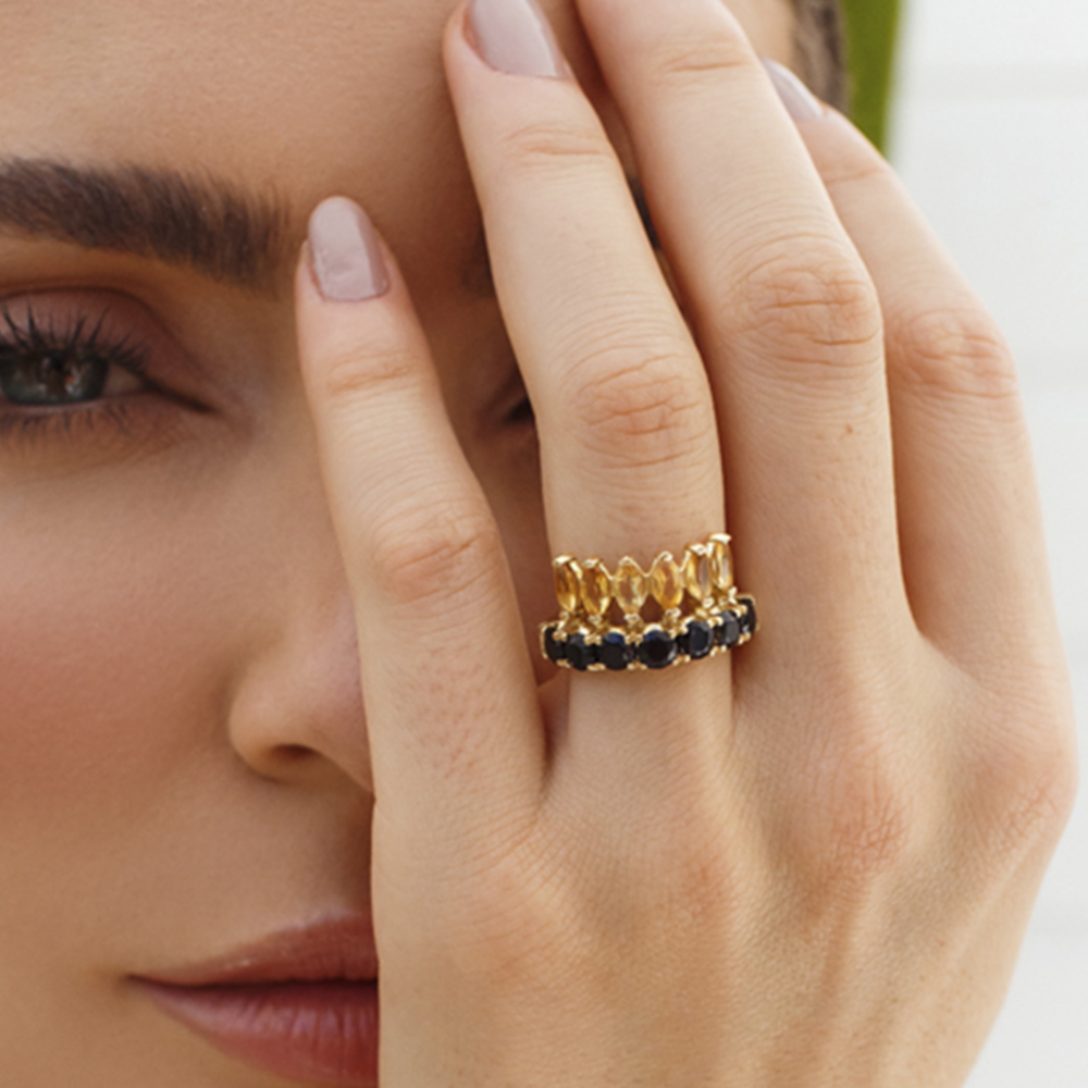 Todas as nossas joias são feitas com ouro 18k e pedras preciosas naturais, cuidadosamente selecionadas por sua qualidade e beleza.