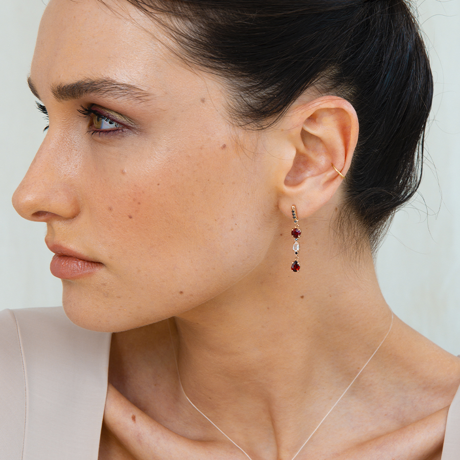 Todas as nossas joias são feitas com ouro 18k e pedras preciosas naturais, cuidadosamente selecionadas por sua qualidade e beleza.