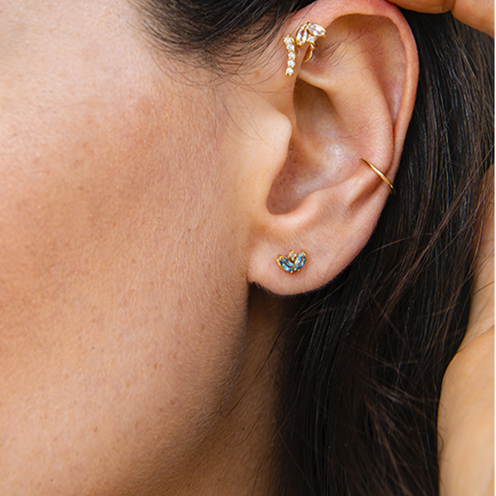 ** Foto do Lótus na orelha não corresponde ao produto anunciado, pois são pedras diferentes, sendo apenas para entendimento da proporção do Brinco Lótus Safira Amarela na Orelha