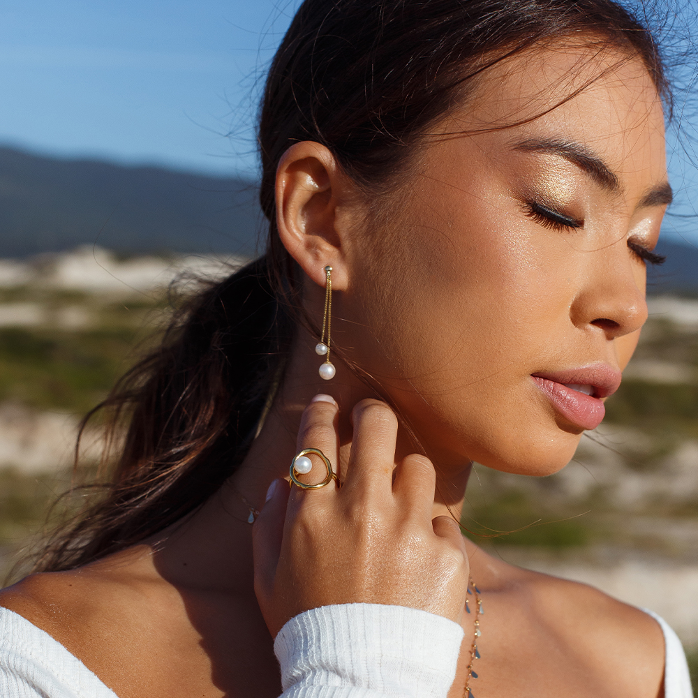 Todas as nossas joias são feitas com ouro 18k e pedras preciosas naturais, cuidadosamente selecionadas por sua qualidade e beleza.